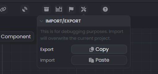 To export your project, just click on “Copy” next to “Export”, and paste the result in a file, or as plain text.